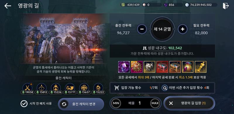 출전투력90000정도되는데 피빠지는녀석들 자리바꿔줍니다 그래도 죽을때있어요 셋팅은 같으시네요