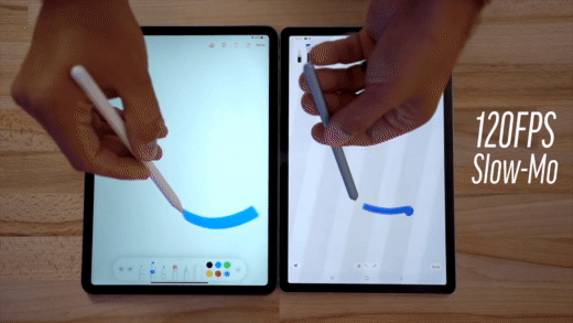 아이패드 프로 3세대 vs 갤럭시탭s6의 펜 속도 차이.gif