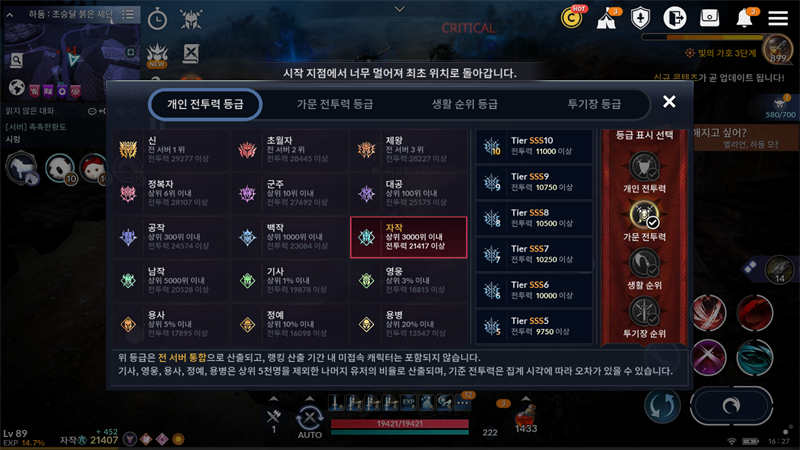 서버랭킹 1위 밑으로 모든게 평등하다 ``; 투력 만능세계..조만간 전섭랭킹 1위가 3만대 얼마안남앗다 ㅎㅎ