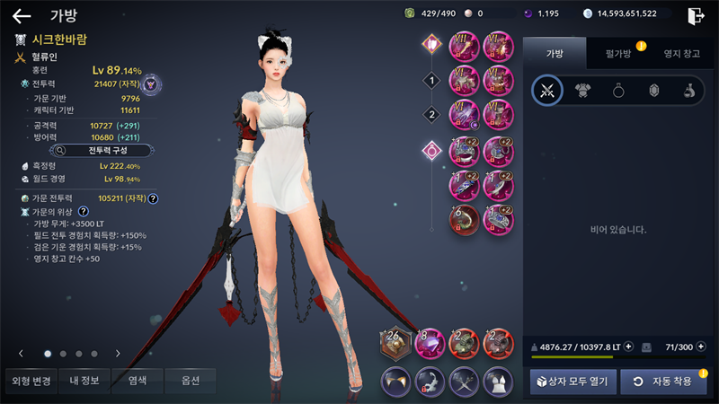 ps.요즘 투력올리는건 균돌 10퍼대 뽕 이랑 토벌지식으로 찔끔씩 올리는게 전부 ㅋㅋ 태고휘장 태고유물 만들면 투력 확 오르겟지만..