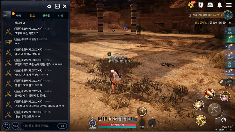 한명이 사냥중이라 같이 비벼놓고 잤는데
