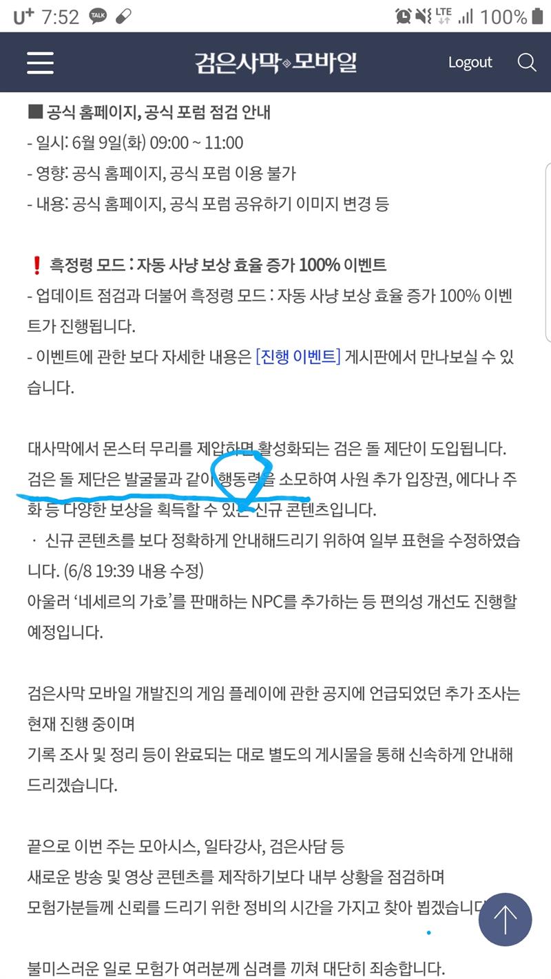 검은돌 제단이라고 신규 추가 컨텐츠가 행동력 소모시켜 에다나 주화 준단다