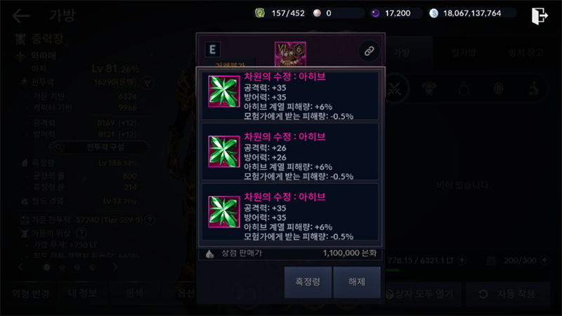태 장비는 발크스50퍼랑 돌, 돌복권 몇개 필요함?
