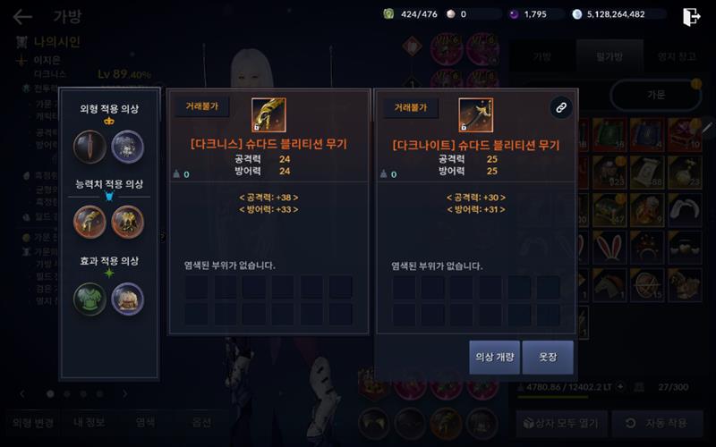 할인하면 안되죠 각성과 계승은 공짜가 되야죠 의상은 무기의상은 1000펄하고 변경에
