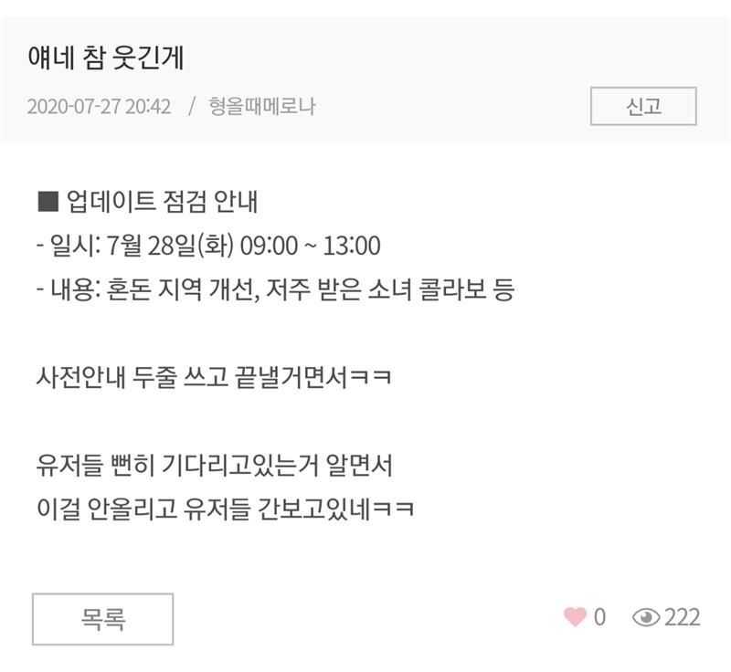 ???: 안정적인 업데이트를 위해 점검 주기를 다시 2주 간격으로 변경하였습니다.