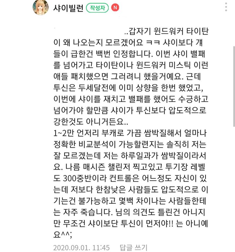 ☆☆☆속보) 샤이가 투신보다 압도적으로 강하지않음☆☆☆