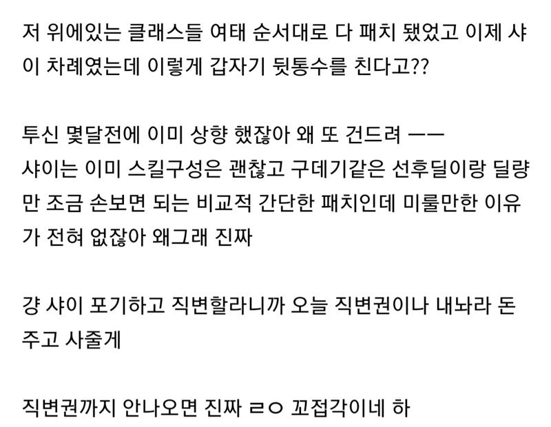 상향 한번 했다고 순위 뒤로 미뤄지면 천랑낭랑은 어떡함?