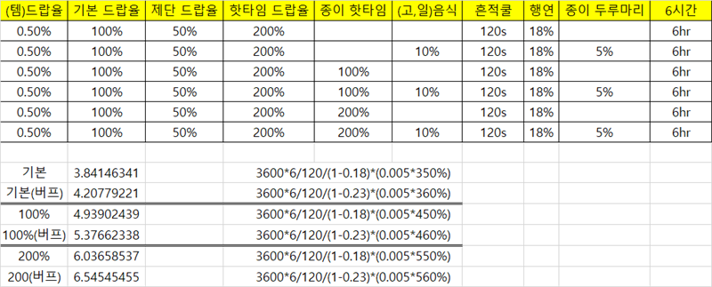 흔적 쿨 120초로 계산 ( 시간마다 따박따박 나오는걸로)