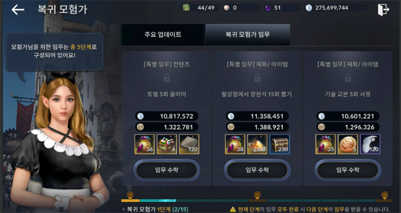 복귀 특별 임무 3개중에 뭐 받아야하는 거에요? 아무거나 깨도 상관없나요?