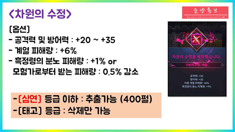 - 속성부캐작 https://youtu.be/7h65Wm48a-s