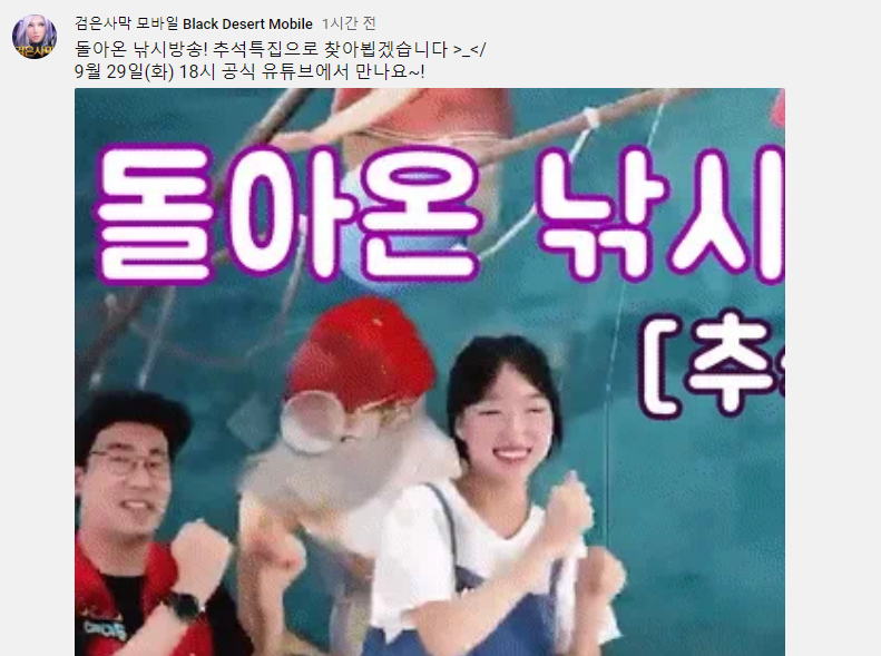 내일 저녁6시 낚시방송 있음 ㅋㅋ