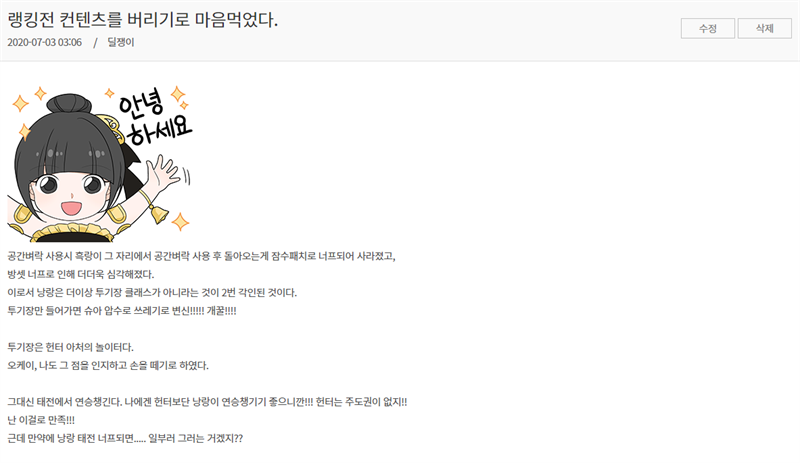 낭랑 정말 쓰레기가 됐네... 이게 펄업이 의도하는 바인가?