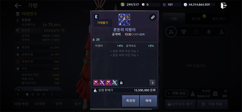 (현재 본캐 풀혼돈, 올차수, 각인은 평균 30)