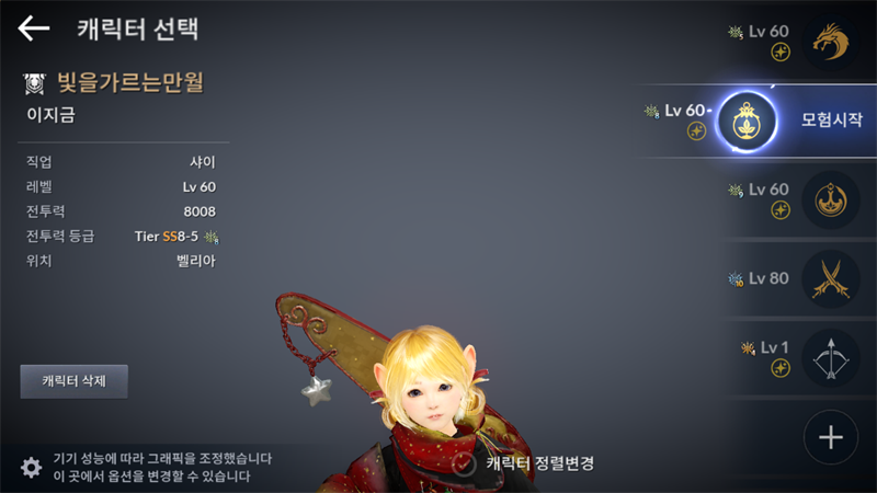 캐릭터 생성권으로 샤이 클래스 생성을 선택하셨다면, 캐릭터 선택 후 첫 진입 시 나타나는 카메라의 구도가 어색한 점을 확인할 수 있습니다.