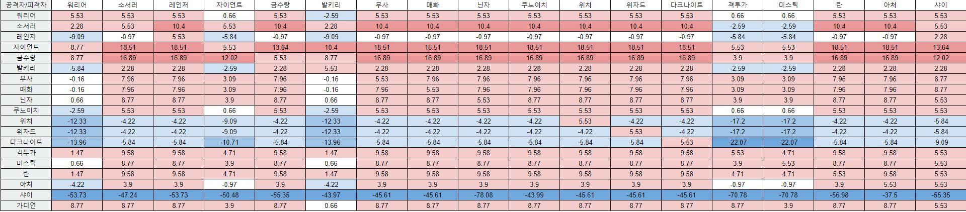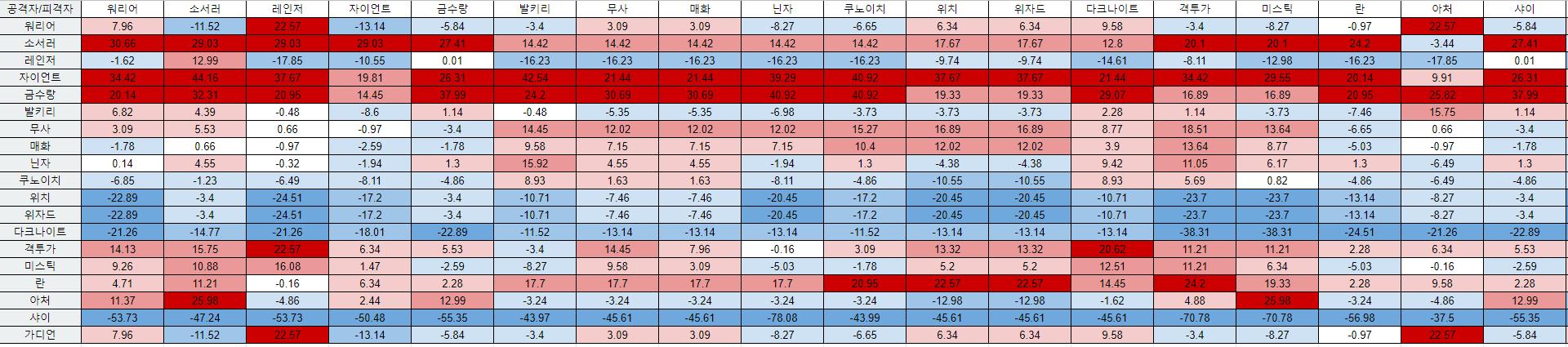 밸런스 못맞출거면 피검처럼 클래스 간 상성 계수 도입해라