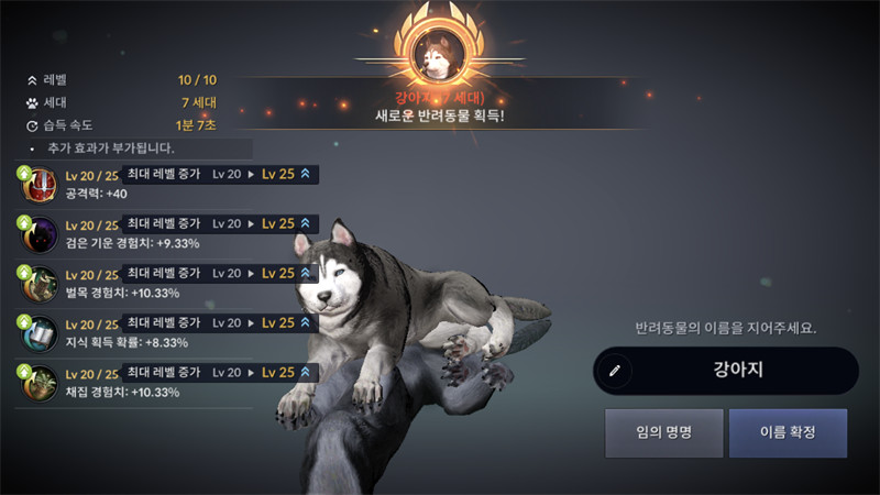 크으~ 7세대 펫 얻었당