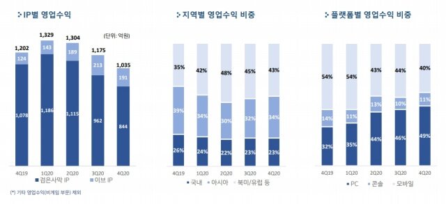 지적사항 보고 직접 실적보고서 확인하며 계산기 두드려 봤는데 피씨검사 매출기준(10억대 반올림) 19년 약 1620억, 20년 약 2160억으로 약 500억 늘어난 반면 모바일은 19년 약 3260억에서 20년 약 2320억으로 약 900억이 날아갔더라고요. *계산기대로면 피씨 최초 매출액 2천억 돌파