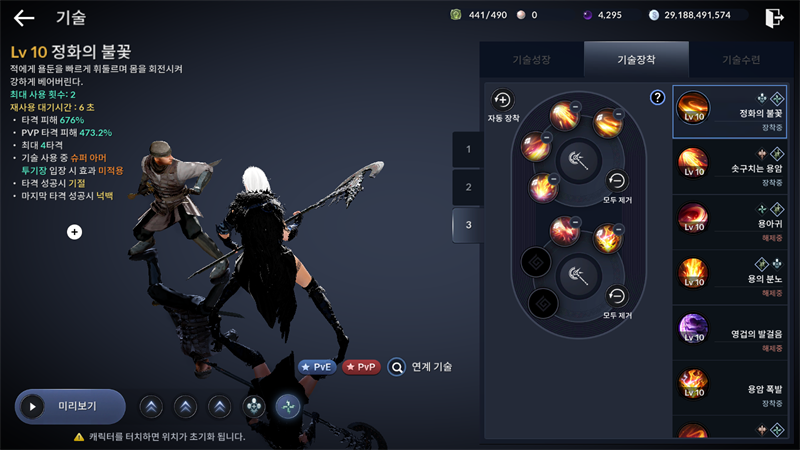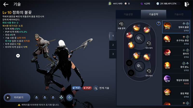 사냥스킬 1번이 몹 많이 잡는거구 3번이 토벌스킬 그리고 전 사냥에도 씀 몹 많이 안잡고 최대한 유지력 좋은구성 2번은 피핍스킬