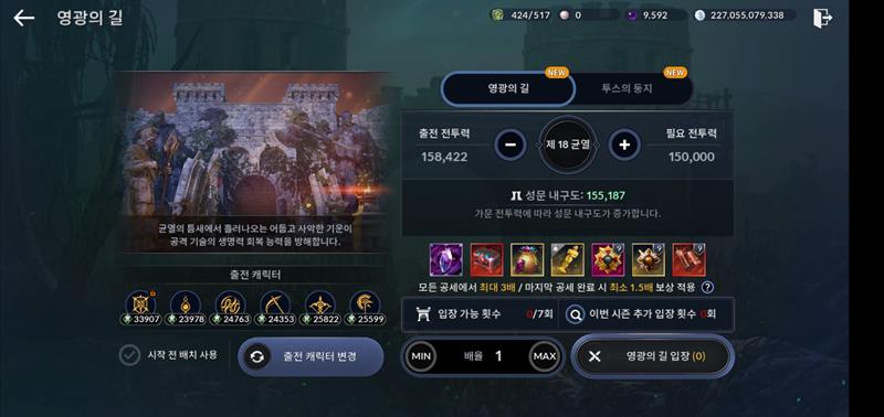 아까15만4천7백으로 18균열 5공세몇번해버려서