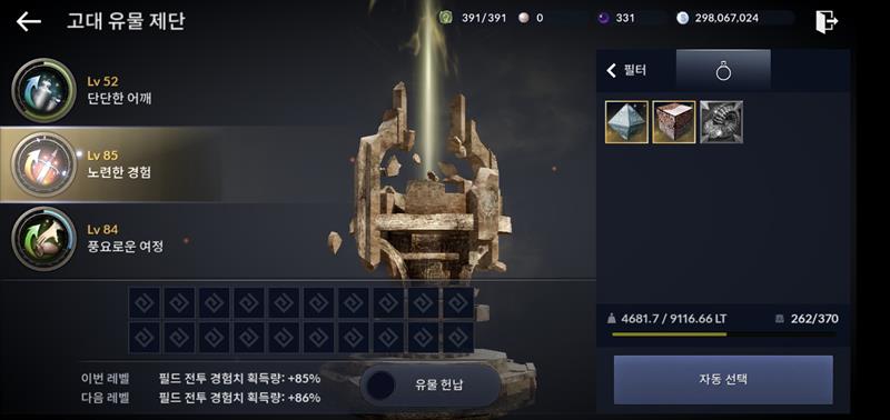 아이고.. 유물파편 200만개 쓰느라죽는줄..