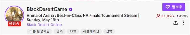 PC검은사막 '아르샤의 창' 이라고 얼마전에 한 라모네스 챔피언 쉽 같은거 방송했는데 시청자 3만명임 ㅋㅋㅋㅋㅋㅋ