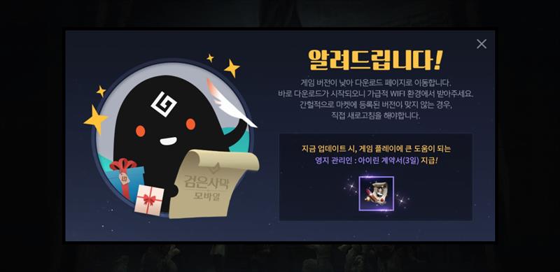 번거로우시겠지만, 구글플레이 > 검은사막 모바일 검색 > 앱 선택 > 업데이트 버튼 클릭하시면 정상적으로 업데이트가 가능합니다.