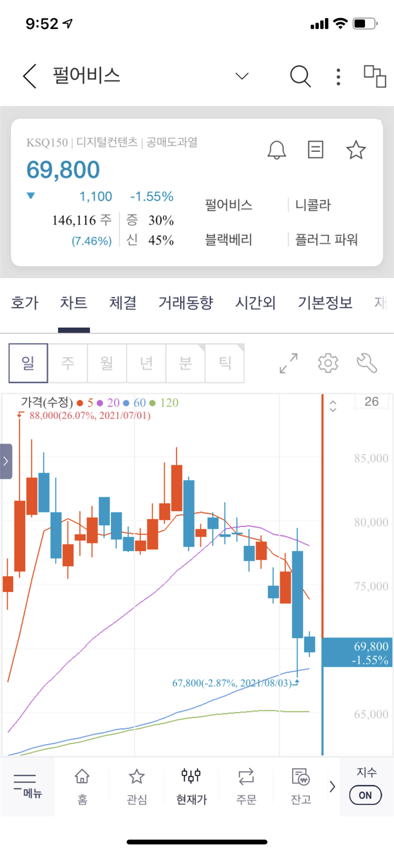 펄없 주식 하락세 너무 염짱성이고 ㅋㅋㅋ