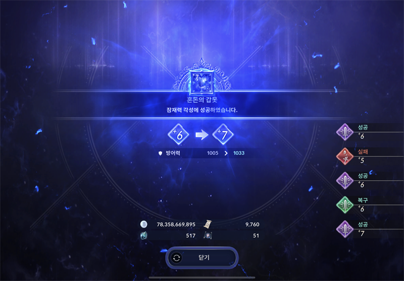 이게 된다고? 50퍼 발크스 20장에 순도높은 흑결정 500개에 돌복 2천장쓰고 성공?