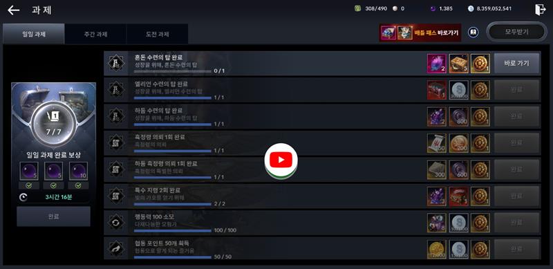 일일과제 혼돈탑완료 과제완료 안됨