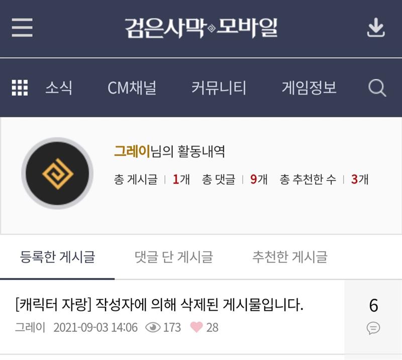 그레이님이 작성한 현재 진행하고있는 이벤트 캐릭터 자랑 게시글이 게시한지 3시간도 안되서 추천수가 28개가 넘길래 추천수 작업이 의심스러워서 댓글 하나 남겼더니 바로 빤스런 해버리시네요?? 떳떳하셨다면 현재 캐릭터 자랑 게시글중 최다 추천을 받은 게시글을 굳이 삭제할 이유도 없었을텐데...많이 찔리셨나봐요??