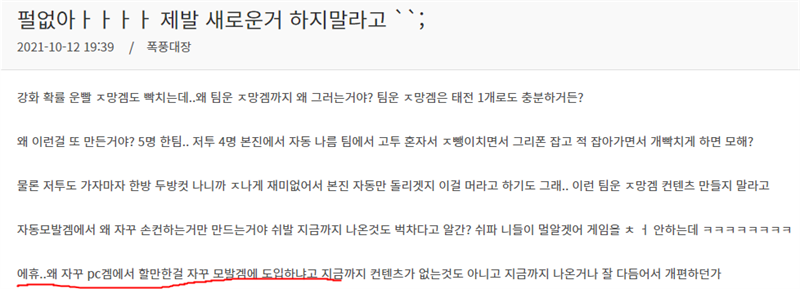 1. PC게임에서 할만한걸 왜 자꾸 모바일겜에 도입하냐고 징얼거려놓고선