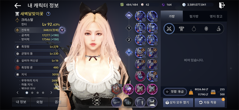 저는 전플결제만하고 7장비7악세마추고 각인이랑지식으로400층됐어요
