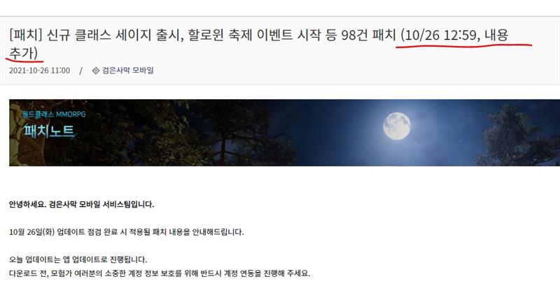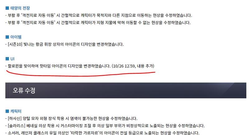상단에 원래 기존의 패치내용이랑 뭐가 달려졌거나 추가됐는지 먼저