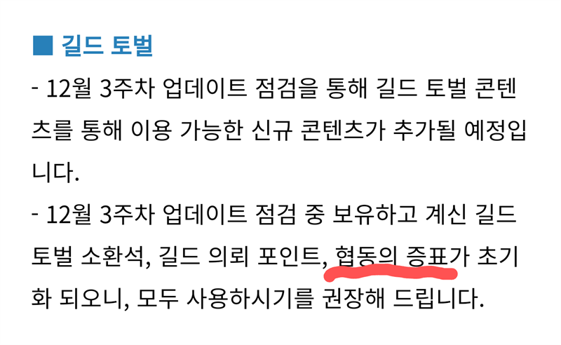 협동증표= 길드토벌시 획득하는 길드토벌 포인트 길드소유