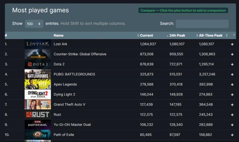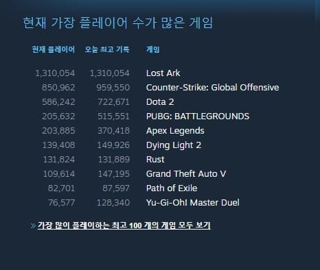 로스트아크 글로벌 역대 스팀 동접 2위 달성.jpg