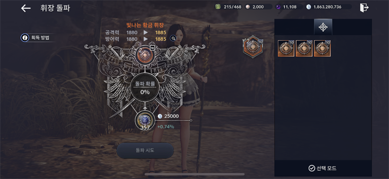 휘장 돌파할때 휘장으론 재료못쓰나요?