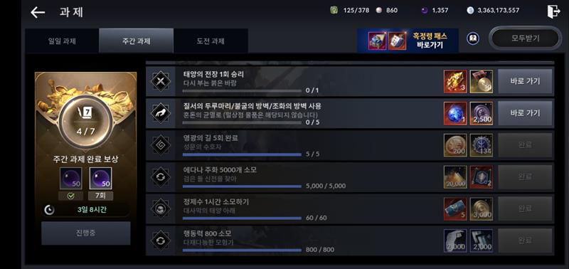 어둠 속의 적 50,000 마리 제압 주간 퀘스트는