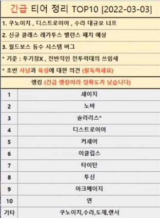 1~10등까지 순서대로 너프 몰이로 조지는거야?