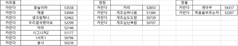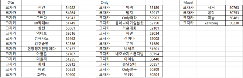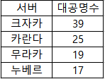 3월 4일 기준 대공 순위 서버별, 길드별 정리함