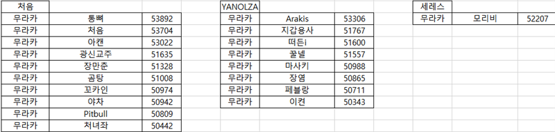 처음 길드가 확실히 야놀자 1등 캐릭 떠오면서 전력이 압도적으로 세다