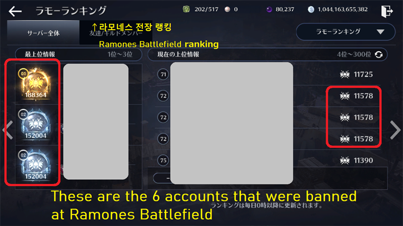 라모네스 전장 문제 7days BAN in Japan. Ramones Battlefield problem