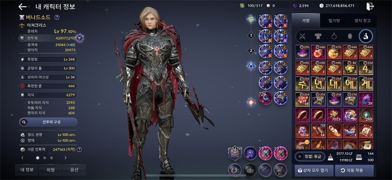 다른 비슷한 유저보다 유물 강화가 젠병이어서 투력이 좀 차이가 남