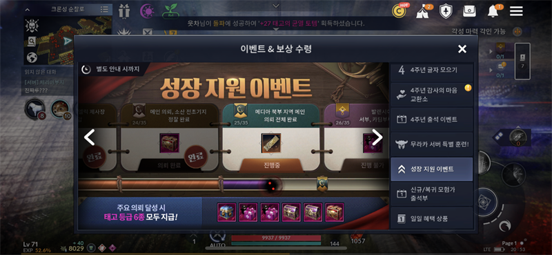 메인퀘스트 물약드시면서 잡을수 있는한도에서 진행해보세요. 성장지원 이벤트는 기한이 업으니 천천히 해보세요. 발렌시아 서부쪽 진행중이신대도 안되면 게임사에 이메일로 문의해보세요.