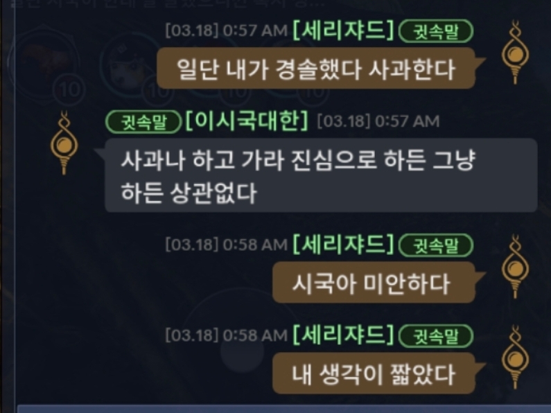 잘생각해보고 여기나 귓말로 사과 한번 해줭 ♡