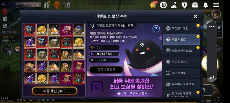 퍼즐 열때마다 옮겨다니나?? 최종 보상은??