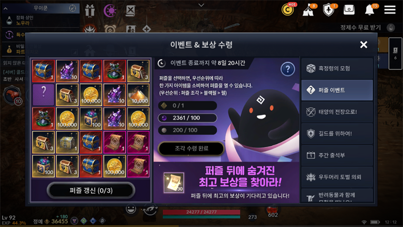 퍼즐 갱신시 보상 자리 고정 아님?