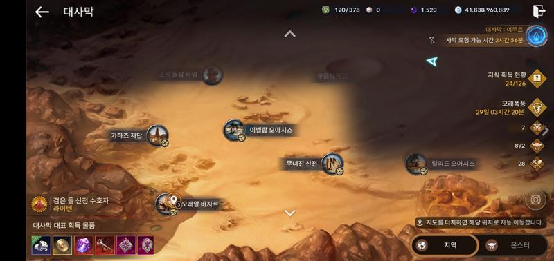 사막 하면서 새부리바위 도착했고 제단 작동했는데 맵은 안넓어지고
