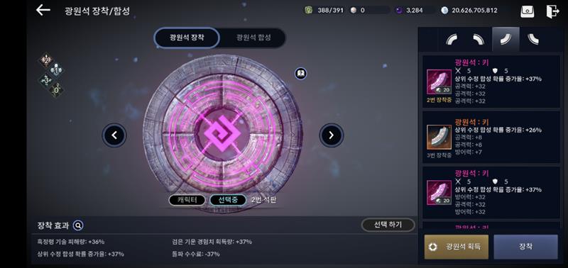 광원석 석판 현재2번 석판에 선택해서 적용중인데용?