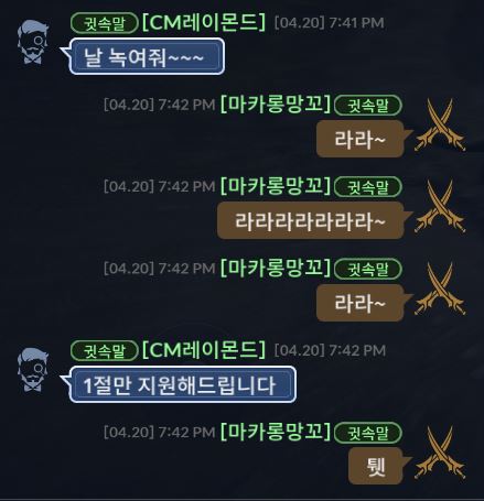 CM레이몬드님 놀아주셔서 감사합니다.