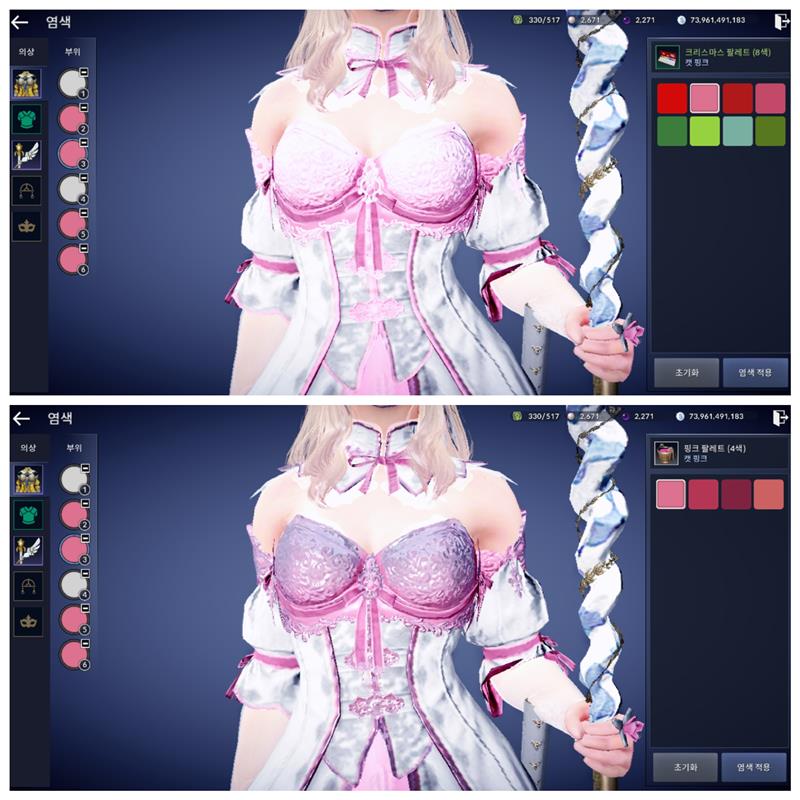(마지막 사진 - 3번째 부위에 캣핑크 적용 비교)